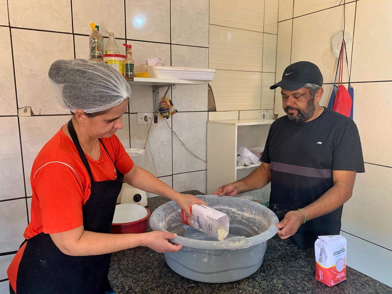 Há todos esses anos ao lado da Paraguaia, Lindomar conta que os trabalhos são compartilhados. A parte dele é acordar cedinho para fazer a massa. Enquanto isso, a esposa faz os recheios e ele coloca os salgados no forno. Depois, é a vez de Elisangela retirar e atender o balcão enquanto o trabalho se repete.