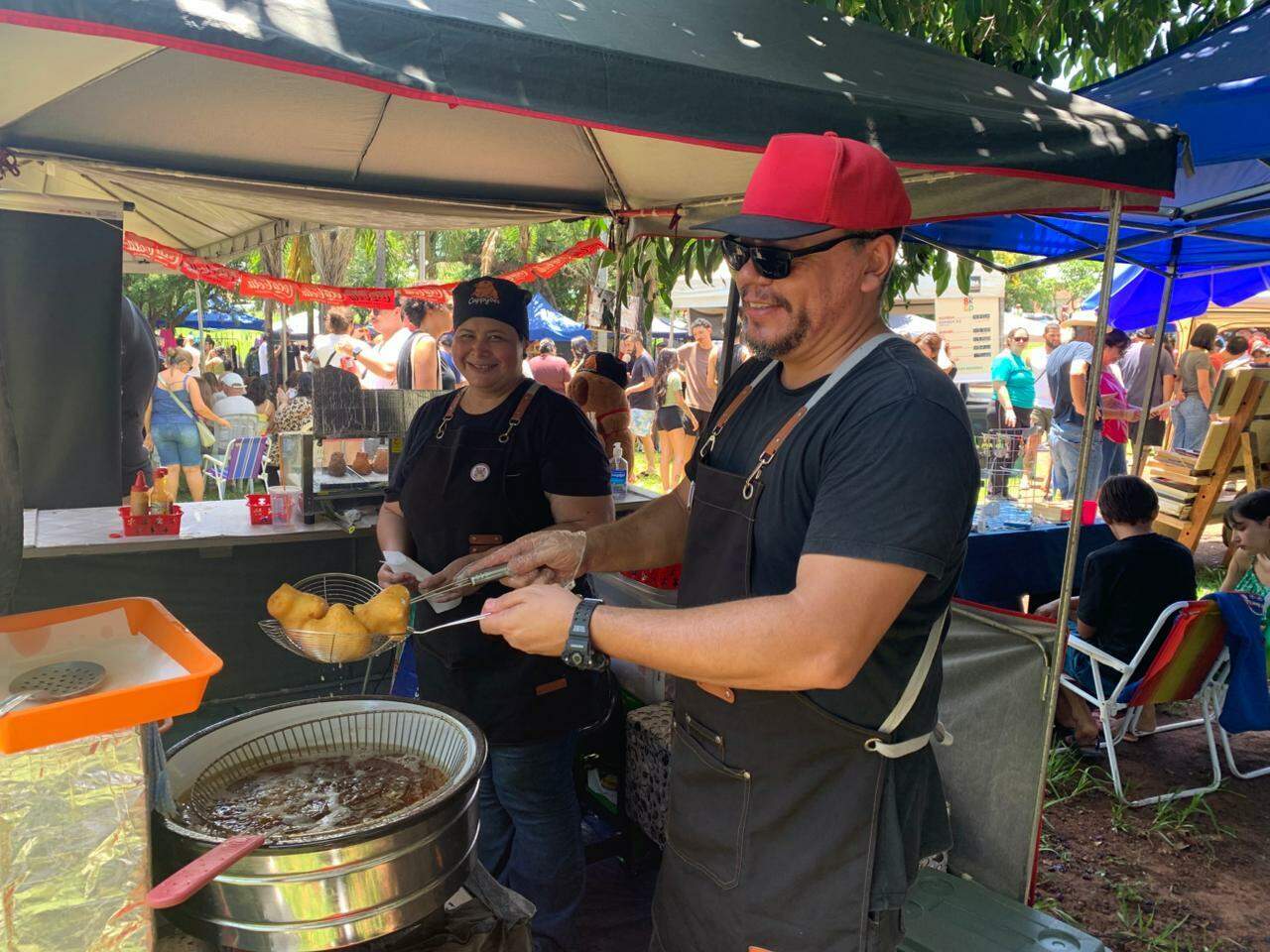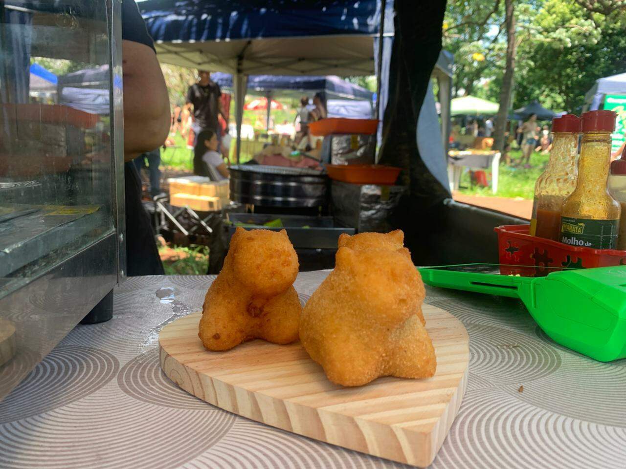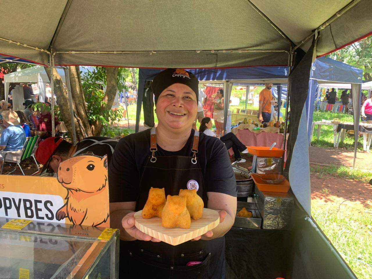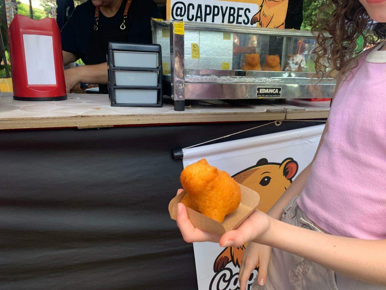 Na barraca da bióloga Lívia Lopes, as “capixinhas de mandioca” e os capibes não param de sair. É só fritar que eles desaparecem da pequena estufa. Moldados à mão por ela e o marido, as coxinhas e quibes em formato de capivaras têm feito sucesso nas feiras livres de Campo Grande. A ideia nasceu em maio de 2025, mas só agora tem chamado a atenção de crianças e adultos.