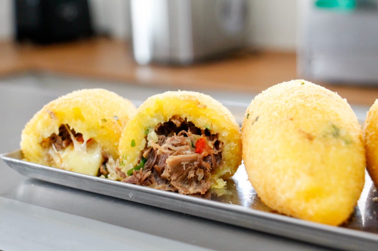 Abrir um ponto próprio era um passo natural, mas que demorou para sair do papel. A aposta foi trazer algo que chamasse atenção logo de cara. A coxinha feita com massa de mandioca e recheio de costela com queijo, rapidamente virou o produto mais procurado. Outra opção para o bairro é a coxinha de carne seca com requeijão.