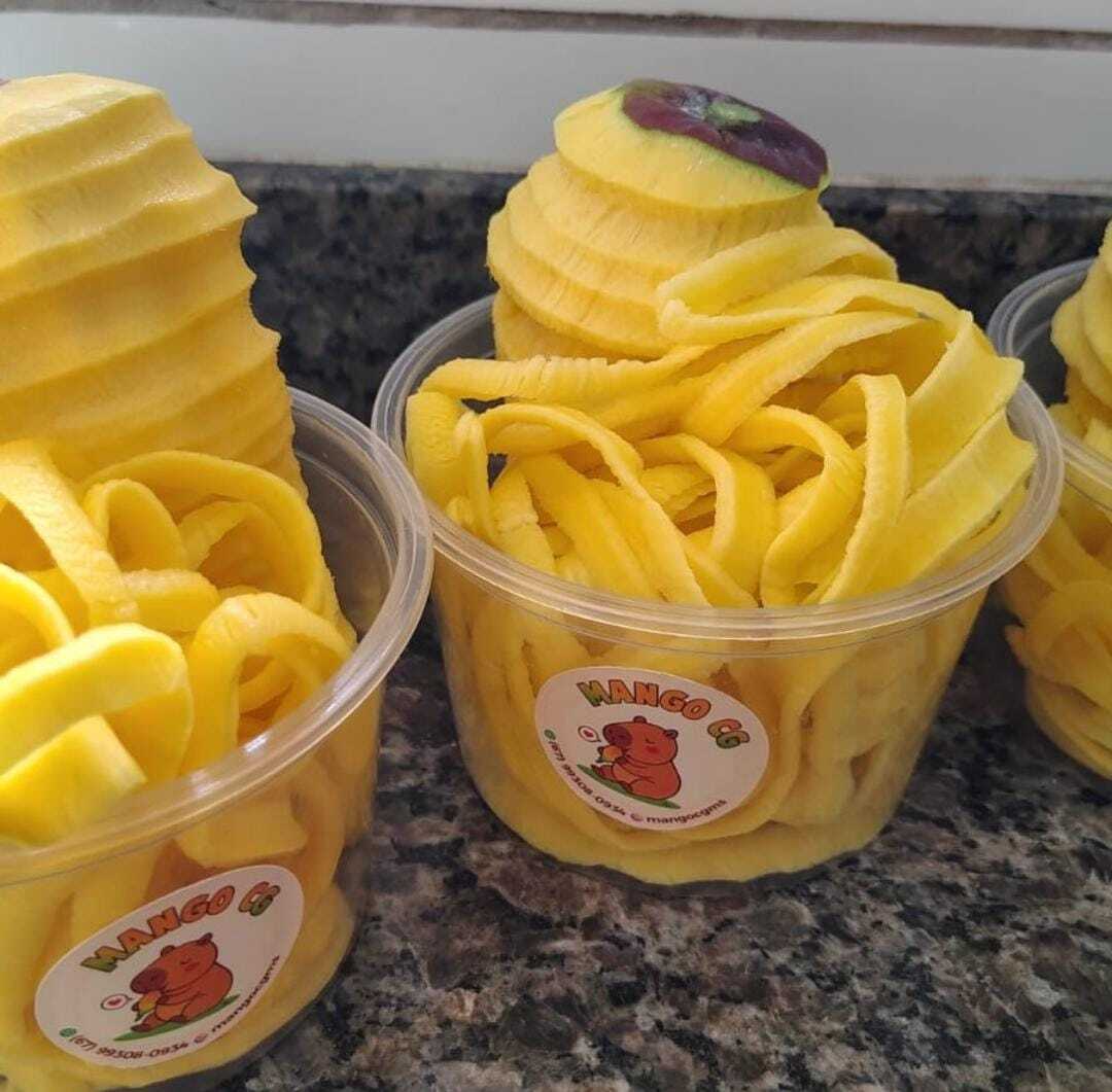 Manga inteira é cortada em filetes e clientes escolhe o tempero. (Foto: Mango CG)