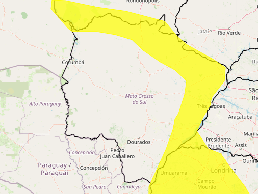 Aviso vale até as 19h desta segunda-feira e abrange dezenas de municípios de Mato Grosso do Sul