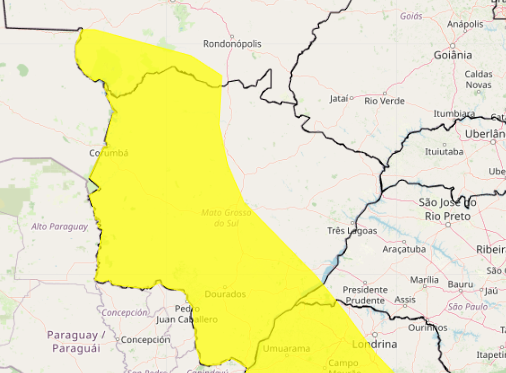 O Inmet (Instituto Nacional de Meteorologia) emitiu dois alertas de perigo potencial para tempestades em Mato Grosso do Sul. Os avisos abrangem Campo Grande e outras 63 cidades, além de um segundo alerta direcionado especificamente para Alcinópolis, Chapadão do Sul, Costa Rica, Pedro Gomes e Sonora.