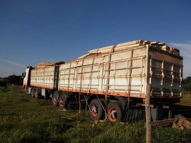 Um caminhão bitrem, com placas de Mato Grosso, foi apreendido na BR-163, próximo a São Gabriel do Oeste, a 140 quilômetros de Campo Grande, com carga de madeira em prencha e sem a documentação legal para o transporte.
