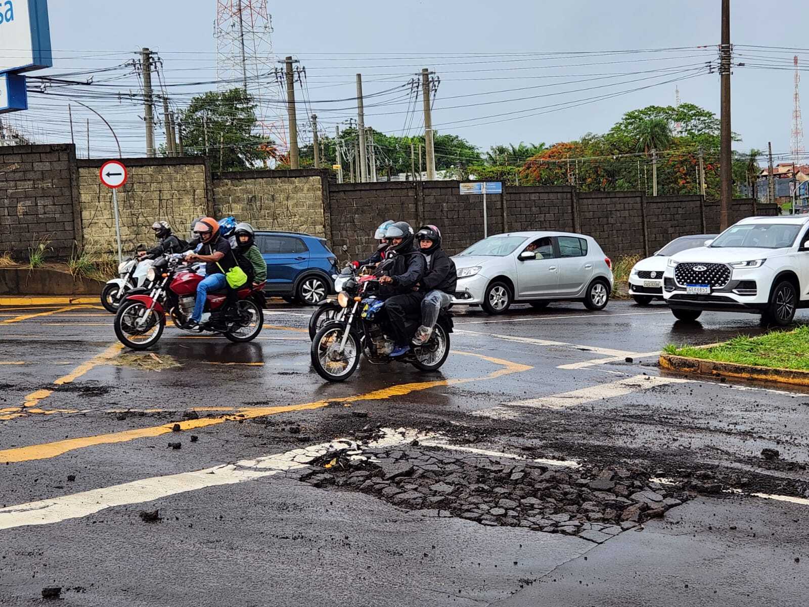 Na rotatória das avenidas Euller de Azevedo e Ernesto Geisel, um motociclista preciso de ajuda para sair da água. Vídeo mostra dois homens auxiliando o rapaz para deixar o local com o veículo. Trecho do asfalto da Rua Joaquim Murtinho, em frente ao Terminal Hércules Maymone, foi levado.