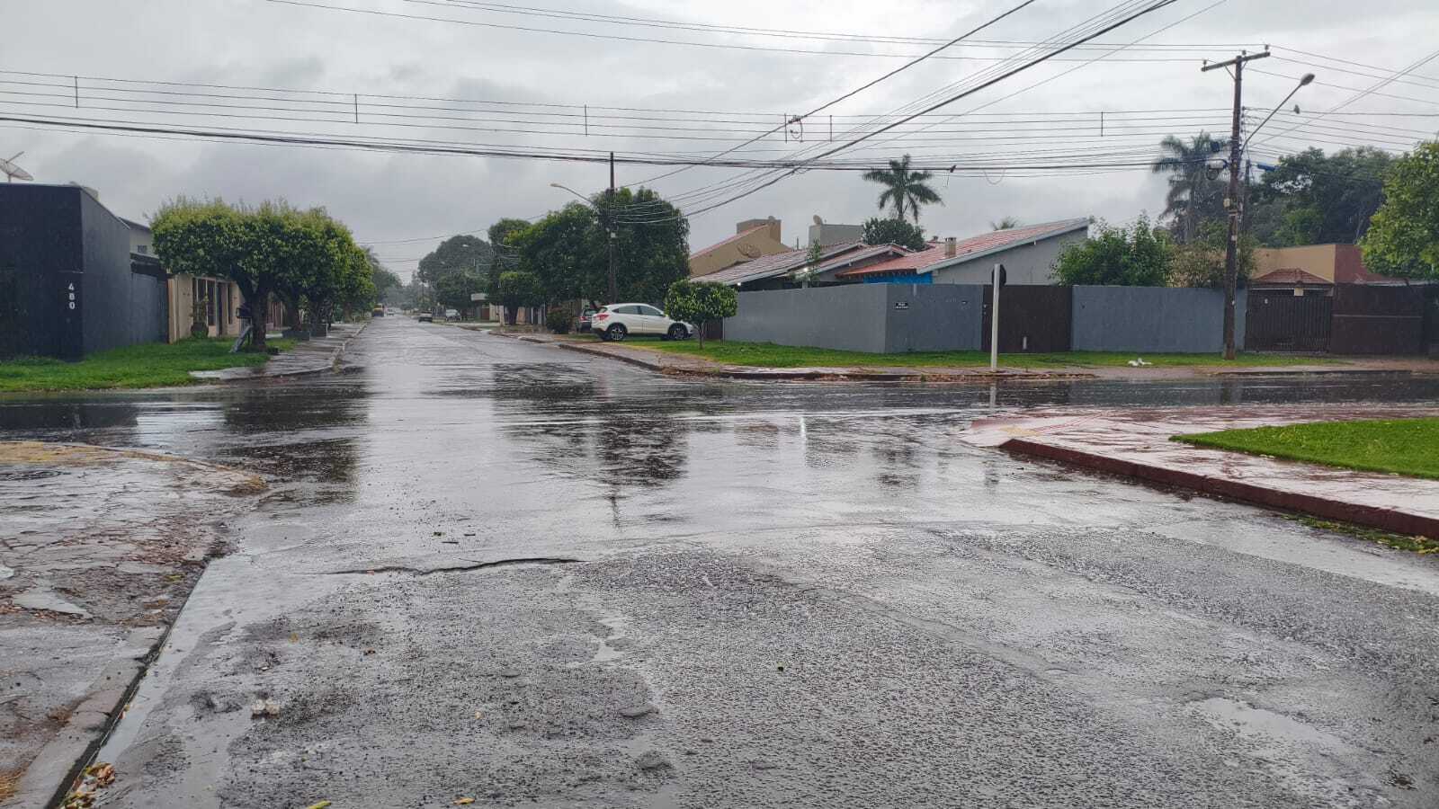 Em dia de alerta laranja com risco de tempestade em Mato Grosso do Sul, cidades das regiões Sul e da fronteira com o Paraguai tiveram chuva forte entre a madrugada e a manhã desta quinta-feira (13).