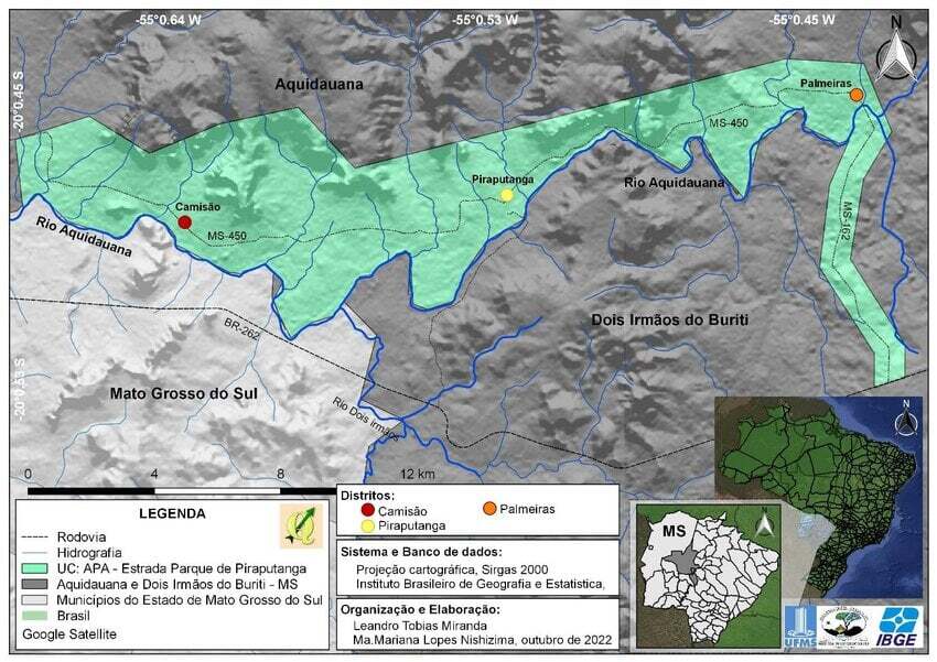Proteção - A Área de Proteção Ambiental Estrada-Parque de Piraputanga foi criada em 2000 com o objetivo de proteger o conjunto paisagístico, ecológico e histórico-cultural da região, além de promover a recuperação da bacia hidrográfica do rio Aquidauana e compatibilizar o uso dos recursos naturais com a ocupação ordenada do solo. Em 2010, a Rodovia Ecológica MS-450 passou a denominar-se “Estrada Parque Palmeiras-Piraputanga”. Em 2026, foi instituída, por meio do Projeto de Lei 35/2026, a Rota Turística “Estrada Parque Palmeiras-Piraputanga-Camisão”, com o objetivo de estimular o desenvolvimento das atividades turísticas e a preservação ambiental nos municípios de Dois Irmãos do Buriti e Aquidauana.