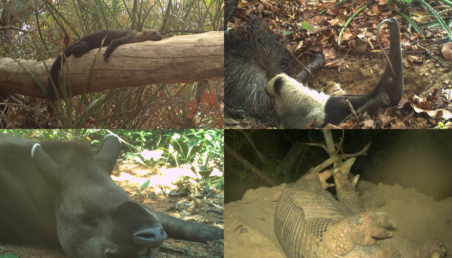 As imagens publicadas mostram um tamanduá-bandeira dormindo com a longa língua para fora. Em outra, uma irara aparece deitada sobre um tronco de árvore. Há também o registro de um tatu deitado de costas.