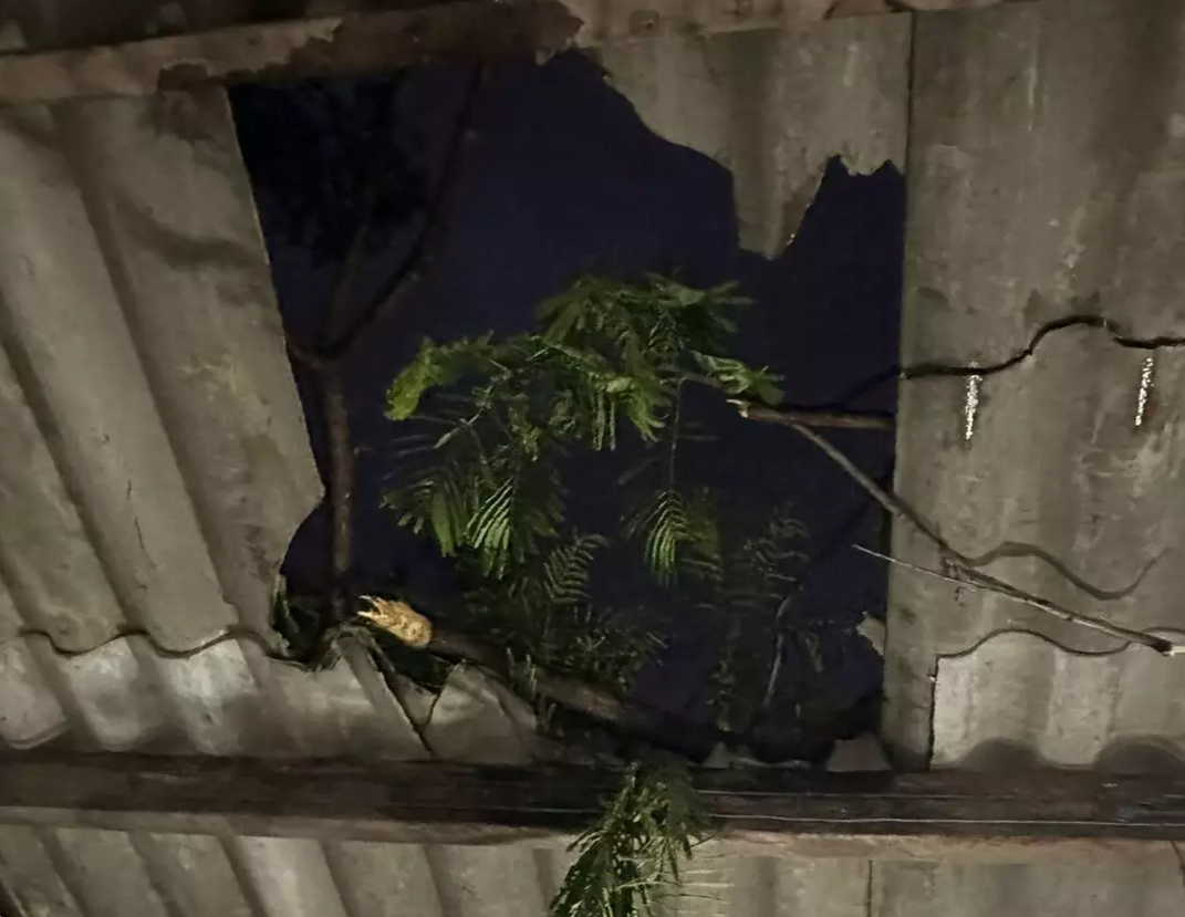 Chuva intensa neste sábado causou destelhamento de casas e queda de árvores; não há registro de feridos