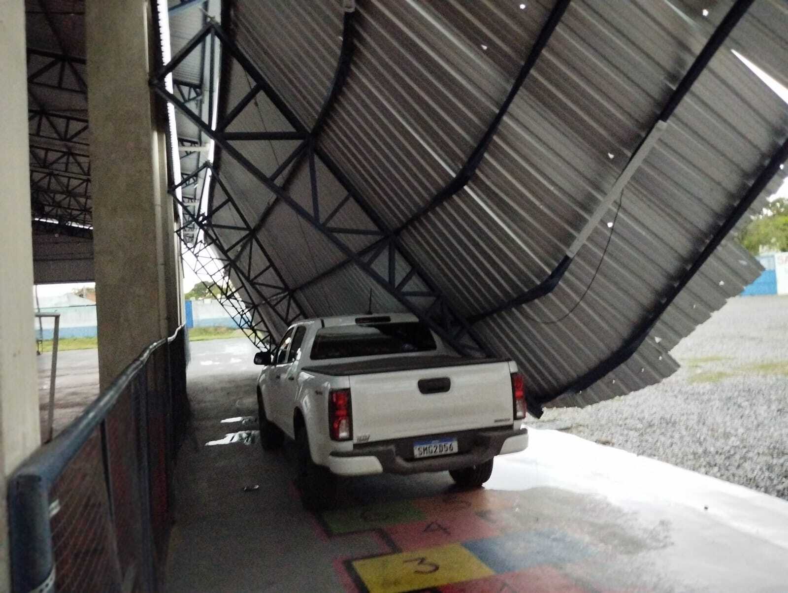 Cobertura despencou com a força do vento (Foto: divulgação / Defesa Civil)