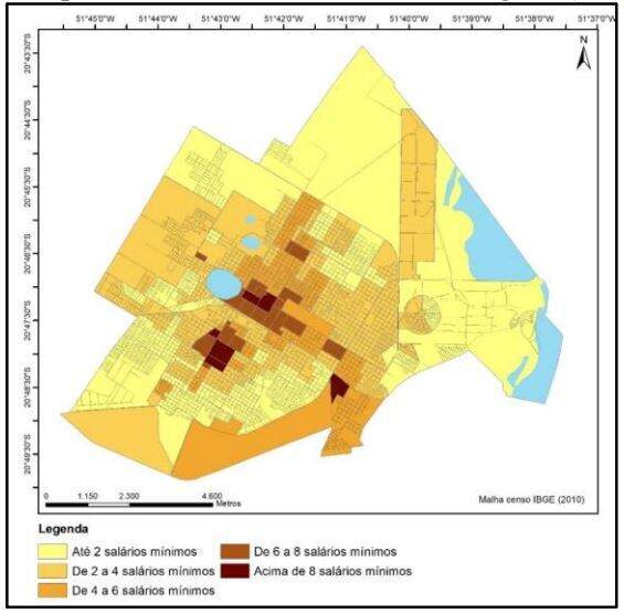 Mapa de renda domiciliar de Três Lagoas (MS) (Foto: Reprodução)