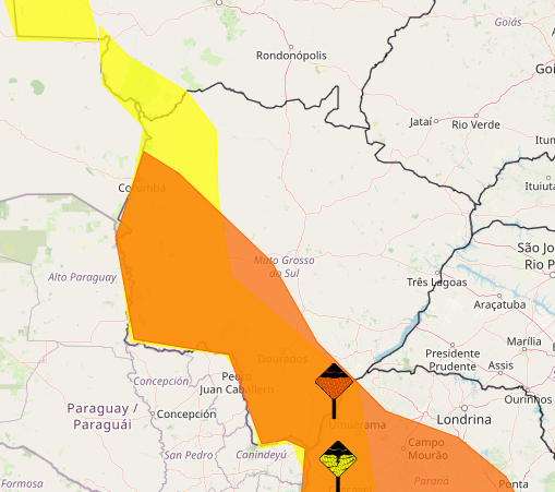 O Inmet (Instituto Nacional de Meteorologia) emitiu dois alertas para Mato Grosso do Sul neste fim de semana, indicando risco de chuvas intensas e grande acumulado de precipitação em diversas regiões do Estado. Os avisos valem entre este sábado (25) e o domingo, e atingem principalmente municípios das regiões sul, sudoeste e Pantanal.