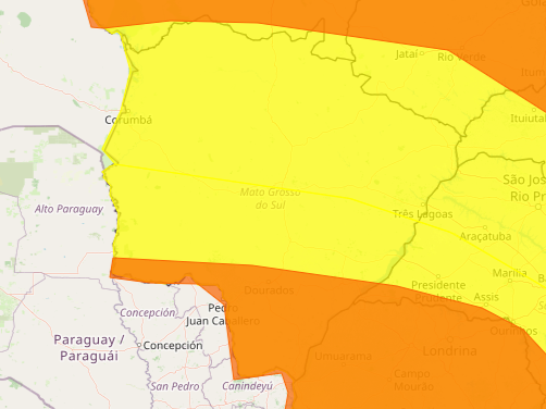 As temperaturas seguem elevadas. No Pantanal e no sudoeste, cidades como Corumbá e Aquidauana podem registrar máximas entre 35°C e 36°C. Em Porto Murtinho, os termômetros também se aproximam dos 36°C. No sul do Estado, Dourados e Ponta Porã ficam entre 33°C e 36°C. Em Campo Grande, a máxima prevista é de cerca de 32°C. No leste, Três Lagoas pode atingir 36°C.