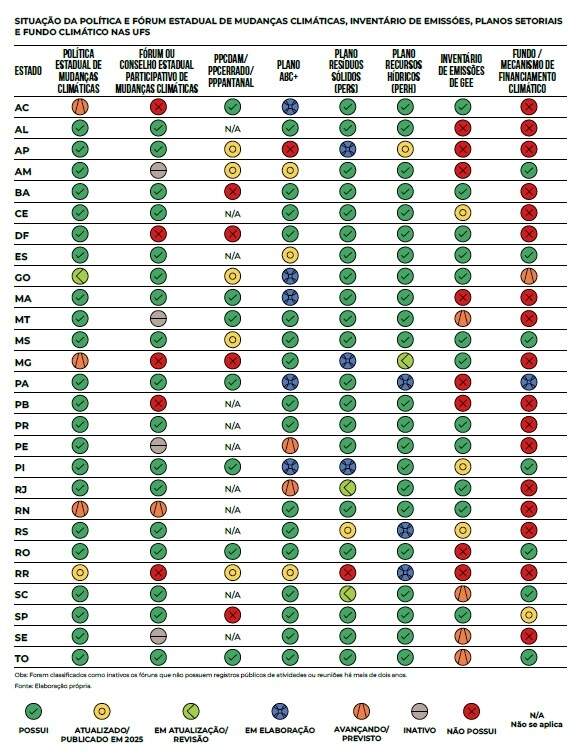 Painel mostra o que cada estado brasileiro cumpriu em relação a governança climática (Foto: Anuário Estadual de Mudanças Climáticas)