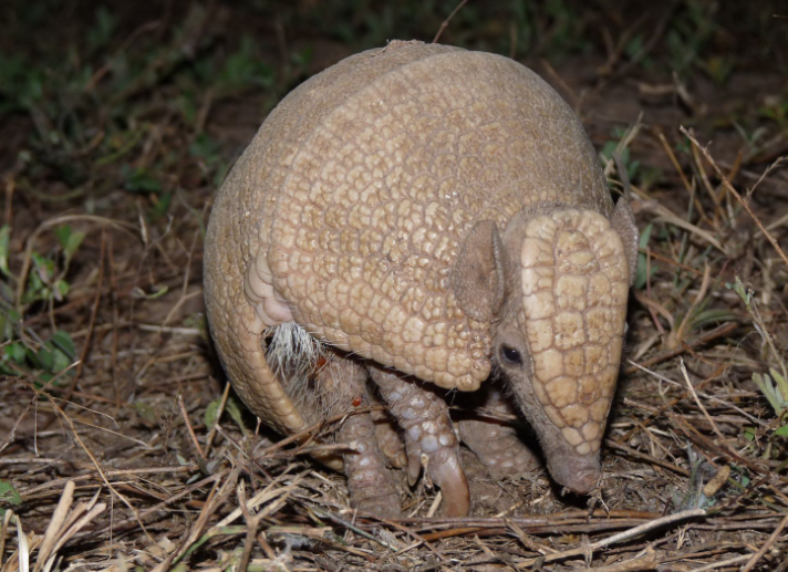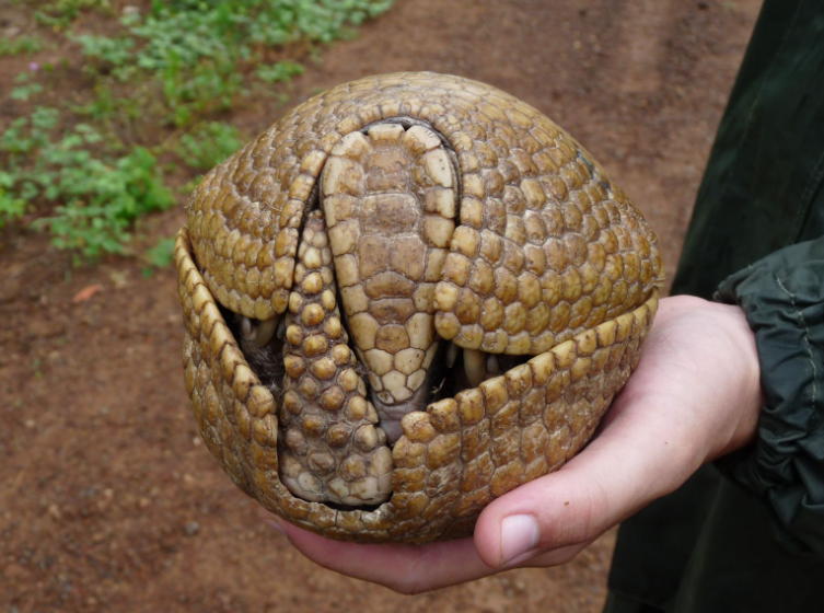 O tatu-bola é a única espécie capaz de se enrolar completamente, formando uma bola como mecanismo de defesa (Foto: divulgação)
