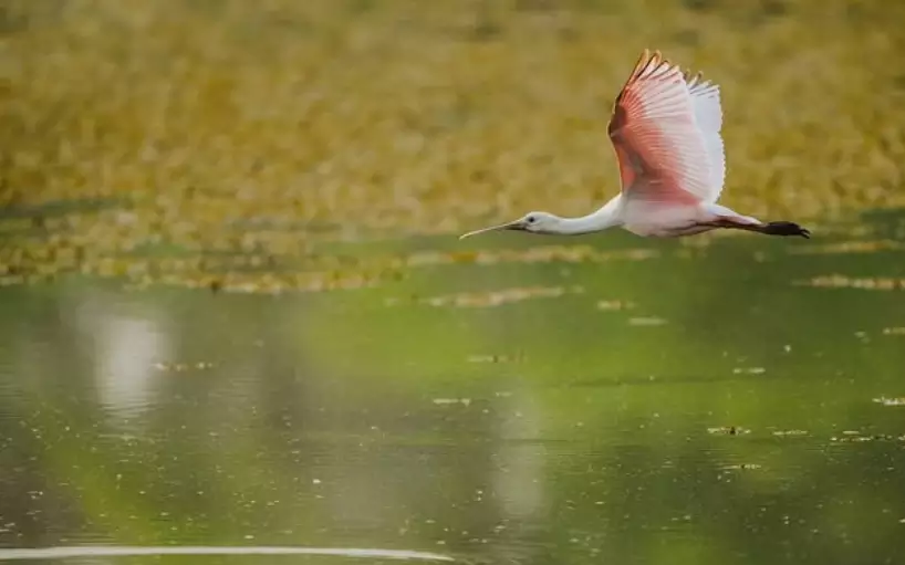 Voo do colhereiro, ave encontrada especialmente em regiões úmidas, como no Pantanal (Foto: Reprodução Onçafari )