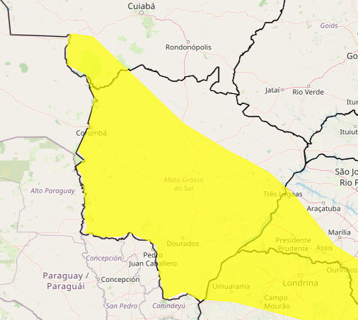 A chuva ja é registrada nos bairros Jardim Imá, Jardim Paulista, São Bento Jardim dos Estados e Tiradentes. O alerta emitido pelo Inmet se estende para regiões oeste, sudoeste e centro-sul de Mato Grosso do Sul. O município de Maracaju também amanheceu com pistas molhadas pela chuva.