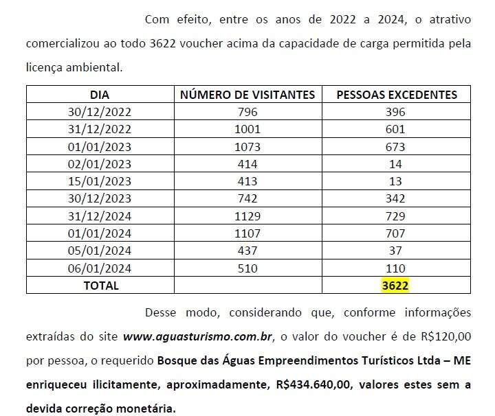 Acordo - Na proposta de acordo apresentada, o empreendimento turístico conseguiu que o MPMS (Ministério Público de Mato Grosso do Sul) aceitasse a exclusão da cláusula que obrigava o balneário a devolver os valores dos vouchers vendidos ou concedidos acima da capacidade de carga dos últimos 30 meses, destinando-os a um projeto ambiental, no valor total de R$ 434 mil. O MPMS acatou o pedido, mas ressaltou que a medida já representa uma grande desoneração para a empresa, reforçando a necessidade da indenização de R$ 120 mil.