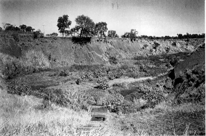 Imagem de 2003 mostra voçoroca no Bairro Mata do Jacinto, em Campo Grande. (Foto: Reprodução)