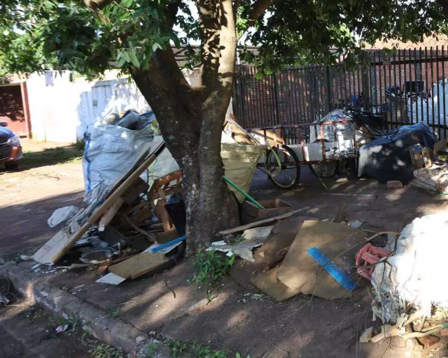 Há ruas em Campo Grande onde todas as lixeiras sumiram, levadas por ladrões. No lugar delas, sacolas penduradas em árvores viram solução improvisada, até que cães e gatos espalhem o conteúdo pelas calçadas. Também tem muita gente revirando sacos sujos em busca de algo que ainda tenha valor, e o que sobra se espalha sem destino.