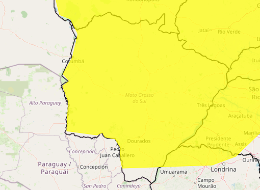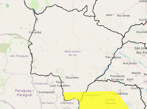 A situação mais preocupante, no entanto, se concentra no extremo sul do Estado. O Inmet emitiu também um aviso específico de tempestade para municípios como Amambai, Coronel Sapucaia, Eldorado, Iguatemi, Itaquiraí, Japorã, Mundo Novo, Naviraí, Paranhos, Sete Quedas e Tacuru. Nessa faixa, além da chuva intensa e dos ventos, há possibilidade de queda de granizo, o que aumenta o potencial de danos, especialmente em áreas rurais e estruturas mais vulneráveis.