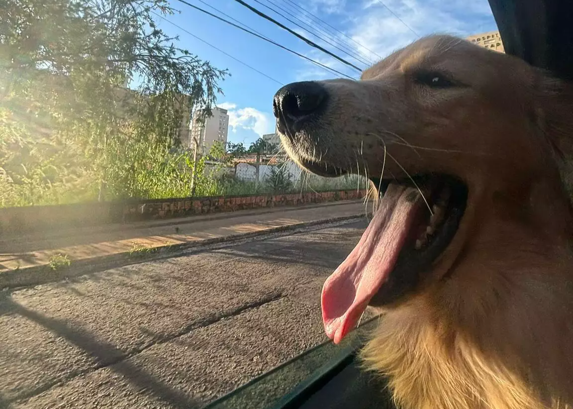 Raquel conta que Bento foi adotado depois que a família anterior mudou para um apartamento e não conseguiria mais manter o cão junto com eles. “Nós já temos outros goldens, adotamos ele”, relata.