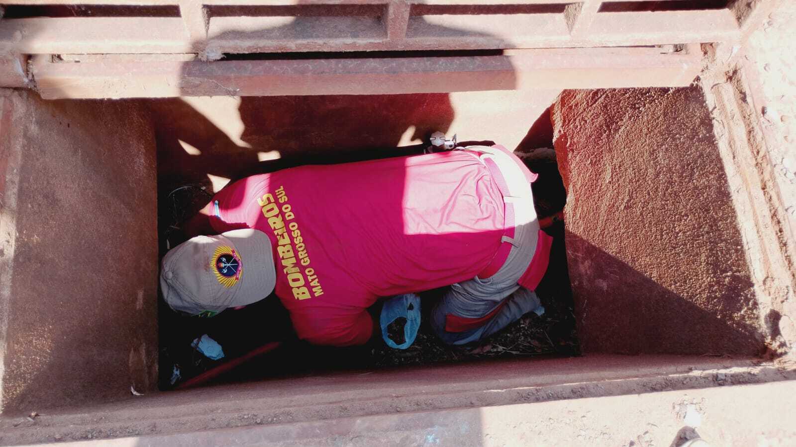 O Corpo de Bombeiros levou quase duas horas para resgatar com vida cinco filhotes de gato presos no cano de um bueiro, no Bairro Monte Castelo, em Campo Grande.