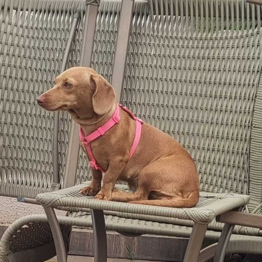 Família procura por Mel, cachorrinha da raça dachshund, que desapareceu na manhã desta quinta-feira (2), na região do Bairro Taveirópolis, em Campo Grande.