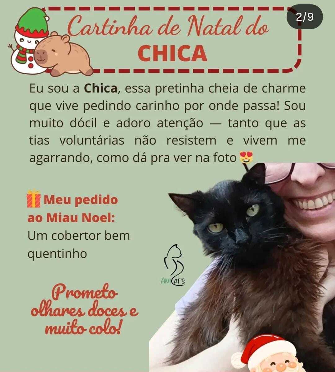 Em Campo Grande, a ONG AmiCat’s decidiu que nenhum dos seus quase 400 gatinhos passaria o fim de ano sem ser ouvido. Pelo terceiro ano consecutivo, a organização lançou a campanha de Cartinhas de Natal, na qual os felinos resgatados usam todo seu chame para pedir aquilo de que precisam para seguir bem cuidados.