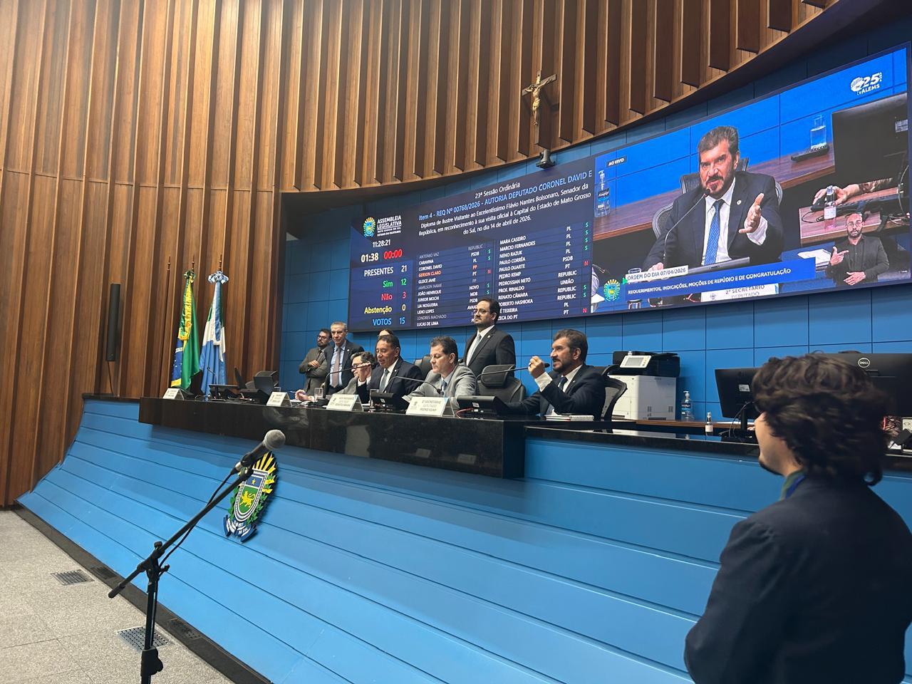 O pedido apresentado por Coronel David teve destaque e provocou debate entre os parlamentares. O deputado estadual Pedro Kemp (PT) se posicionou contra a concessão do título e, de forma incisiva, afirmou que o currículo do senador é “horroroso”, classificando a homenagem como um “contrassenso” por parte da Alems (Assembleia Legislativa de Mato Grosso do Sul).