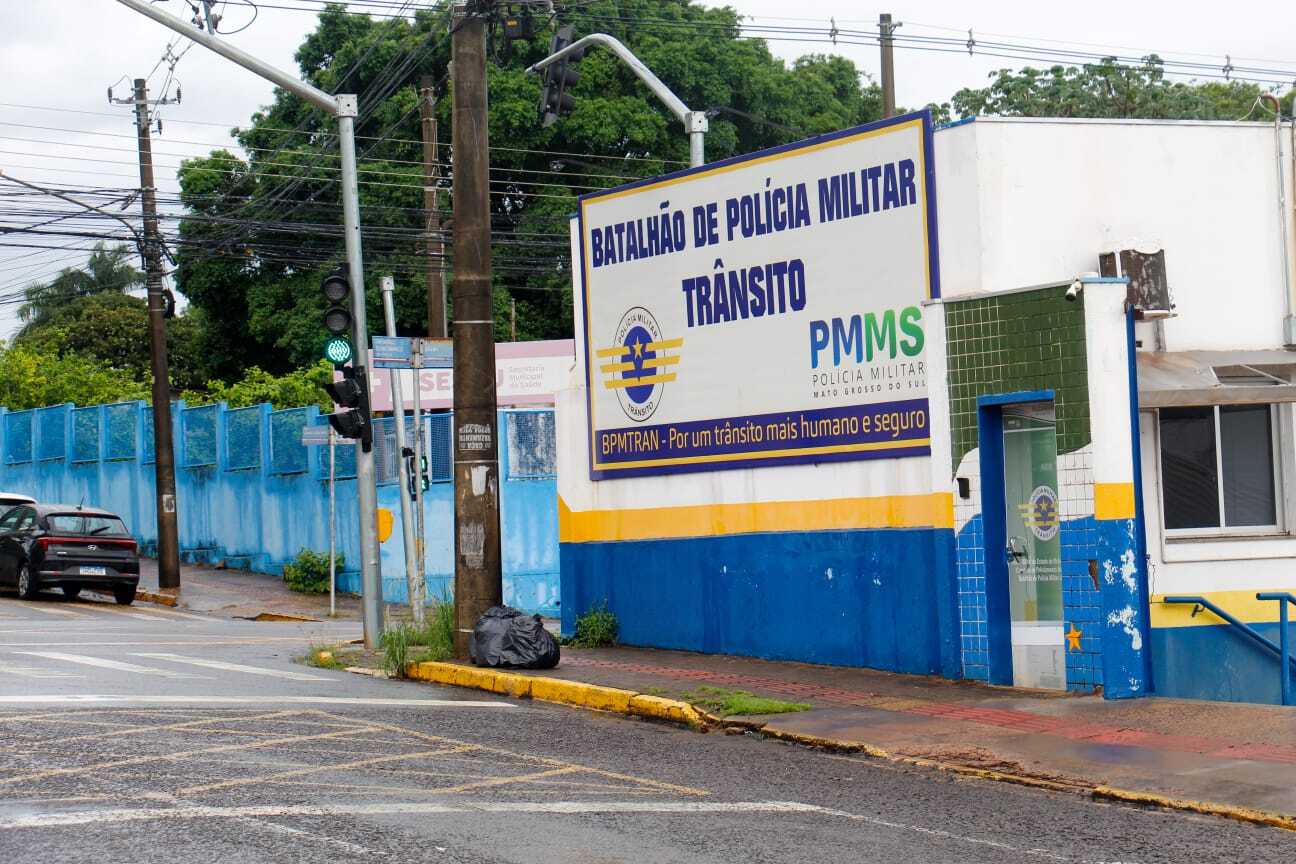 Fachada do Batalhão de Trânsito da Polícia Militar em Campo Grande. (Foto: Juliano Almeida)