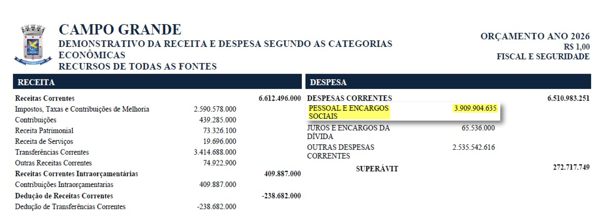 Importante destacar ainda que, conforme apurado pelo Campo Grande News em novembro do ano passado, Campo Grande acendeu o alerta máximo. Dados do RREO (Relatório Resumido da Execução Orçamentária) do 5º bimestre de 2025, de janeiro a outubro, indicam que as contas da Capital operam no limite, sem margem de manobra, o que obrigou a administração a acionar formalmente um plano de emergência fiscal previsto na Constituição Federal.