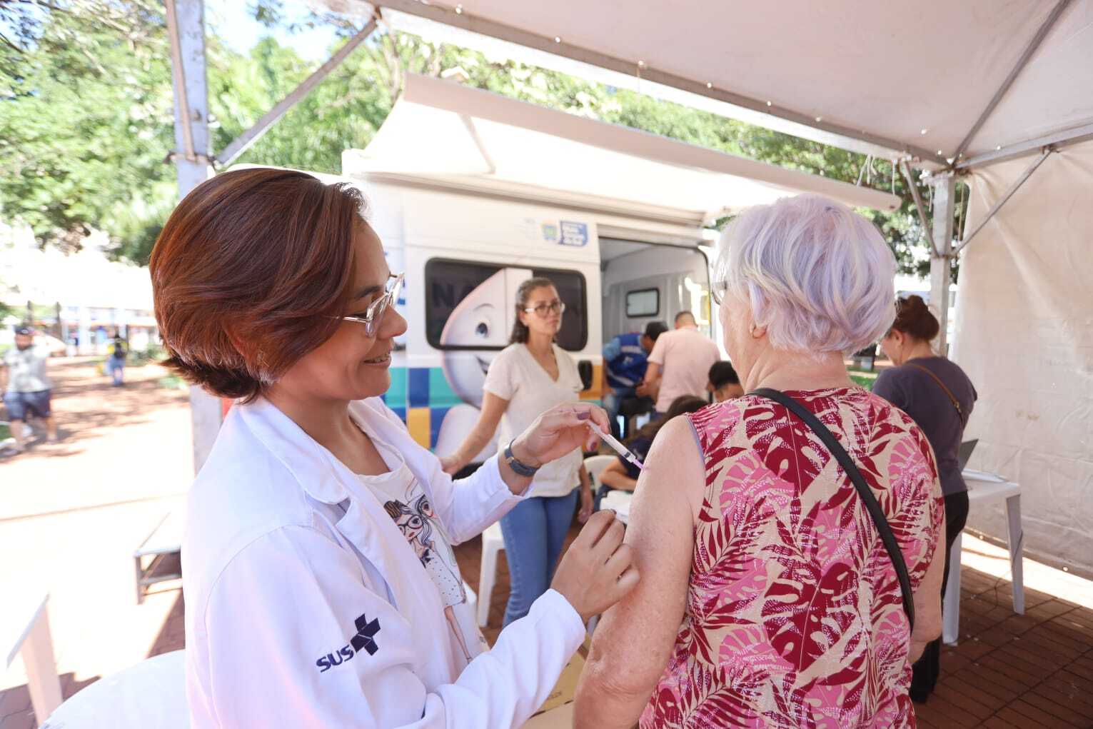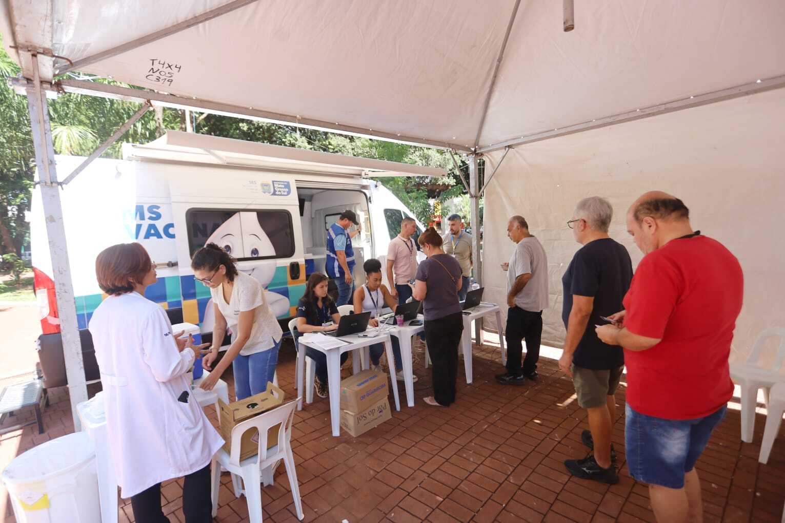 A vacinação contra a gripe teve movimento tímido na manhã deste sábado na Praça Ary Coelho, em Campo Grande, onde a Sesau aplicou 119 doses até o momento em um Dia D realizado em 27 pontos da Capital. A prefeitura tenta elevar a cobertura, que está em apenas 18% do público prioritário em 2026, diante de 287 casos de SRAG, 40 de Influenza e cinco mortes. A campanha segue até as 16h45 em outros locais.