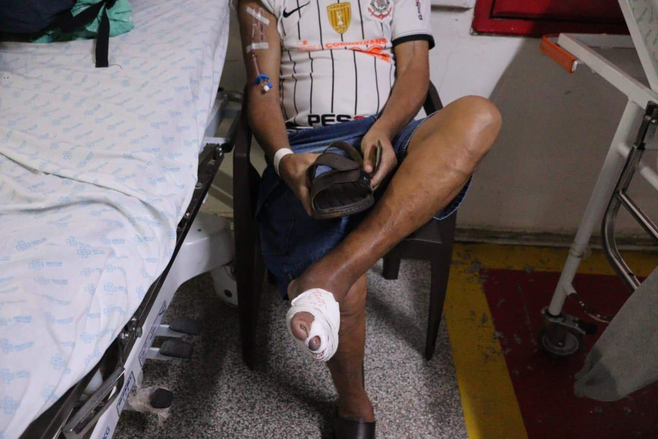 Ele chegou ao hospital na segunda-feira, por volta das 13h, após machucar o pé. Às 9h de terça-feira, ainda estava no corredor aguardando um leito para ser internado e tratar da inflamação e da infecção no membro. Sem esse cuidado, o caso pode resultar numa amputação.