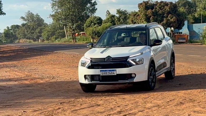 Durante o teste, o carro encarou trechos de terra batida com segurança e conforto, mantendo estabilidade e sem transmitir impactos excessivos à cabine.